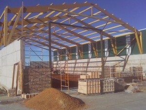 - Proyecto de Ejecución y Dirección de Obras de Nave en el Polígono Industrial de Cantalejo con estructura de madera. Cerramiento a base de muros de hormigón armado y Chapa sandwich. Cubierta a dos aguas de chapa aislada tipo sandwich. Interior diáfano con oficina y aseos en el hastial de entrada.